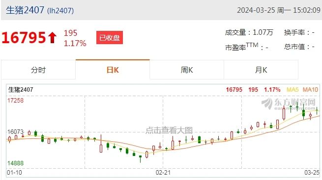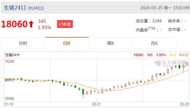 2024年3月25日,生猪期货LH2411盘中站上18000元/吨大关,创年内新高。