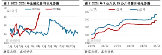 进入2024年6月,猪价延续快速上涨局势,看涨预期烘托下,二次育肥频频入场。随着猪价涨至相对高位,二次育肥成本及风险双双增加,部分投资者转而选择补栏仔猪进行育肥。
